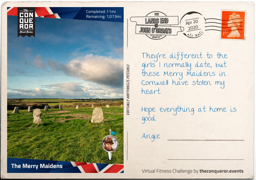 The path then meanders another four miles past more lovely coves, Tator-du Lighthouse and breathtaking cliff side views toward America before reaching Lamorna Cove. Lamorna drew Post-Impressionist artists in the early 20th century and today still draws painter, potters, and other artistic types…including drunken poets. But we will come to that later. So this could be a good spot to pull out the sketchbook and have a spot of lunch or tea. Or if you are like me, be poet like and get a pint at the pub. An inland excursion will take you to the Merry Maidens stone circle, which was the second cute little postcard sent to me for the virtual challenge where the route takes you along the road verses the footpaths.