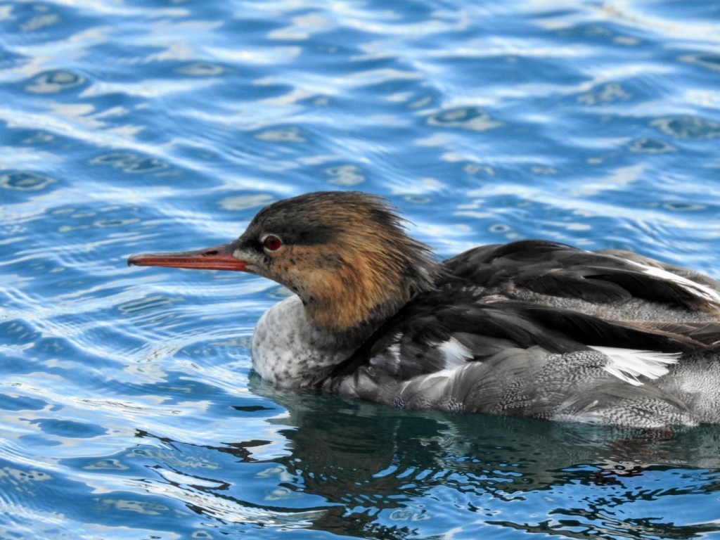 Juvenile red breasted merganser. He stood out because the beak was different from everyone else in the area.