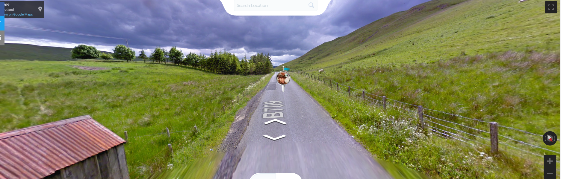 Hmmm, not much around these parts….though it looks as if St. Mary’s Loch isn’t to far away from my virtual spot on the road. I hope I brought me tent. And there must be a pub out here somewhere….